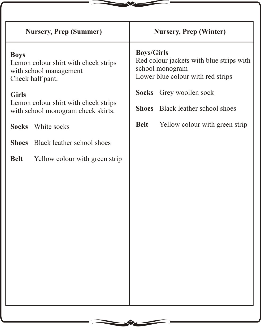 Nursery & Prep (Summer & Winter)